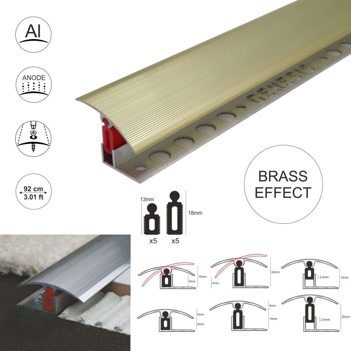 Aluminium door thresholds are the modern, secure way to join rooms and seamlessly transition between floor surfaces. Their design ensures they fit most types of thresholds with ease, while their high-grade aluminium construction makes them strong yet lightweight. What’s more, they have a scratch-resistant and some have a slip-resistant surface that can add extra safety to your home – making them the ideal option for a variety of applications.