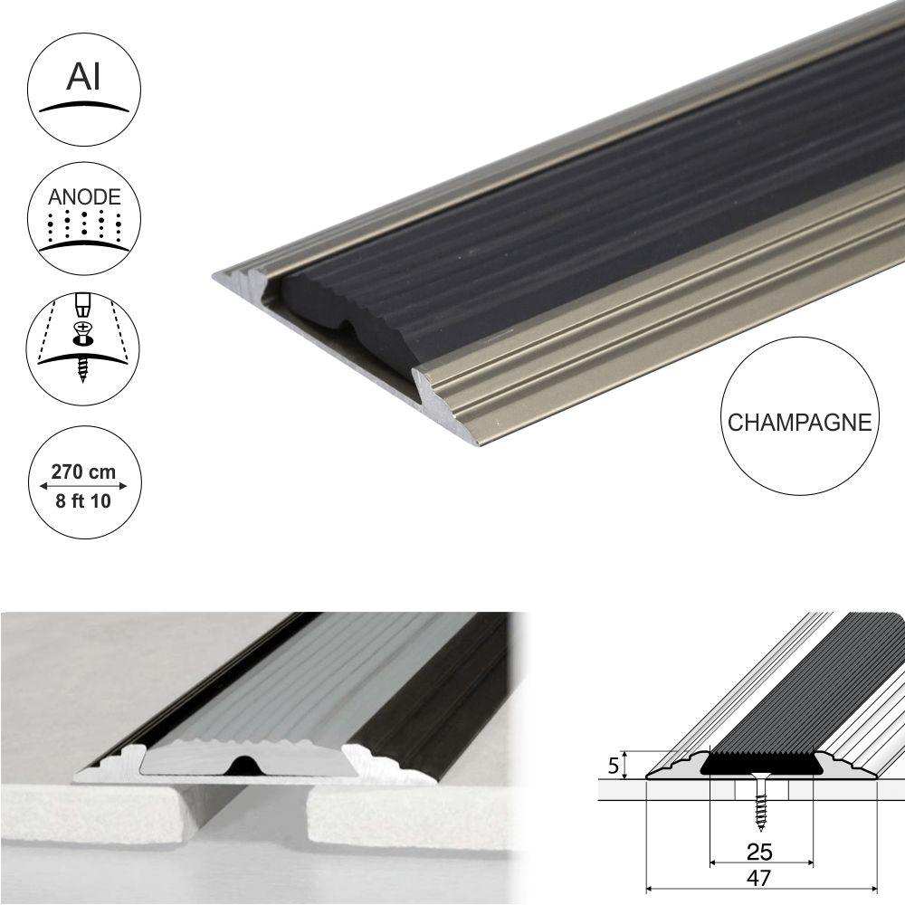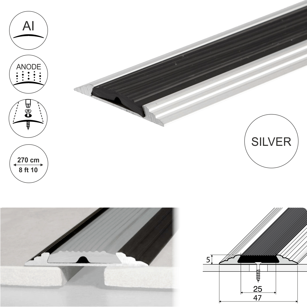 Transition Door Threshold 50mm A10 Anodised Aluminium FlatSlip Strip